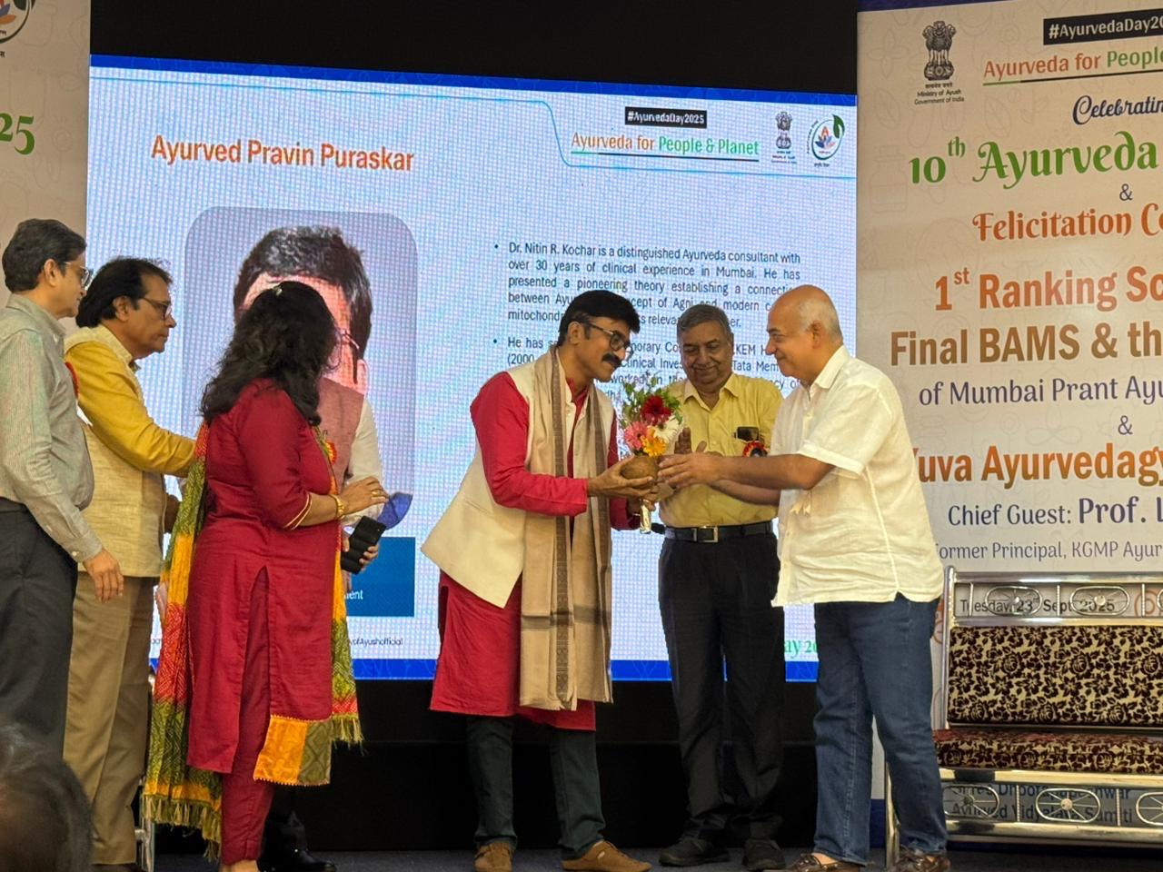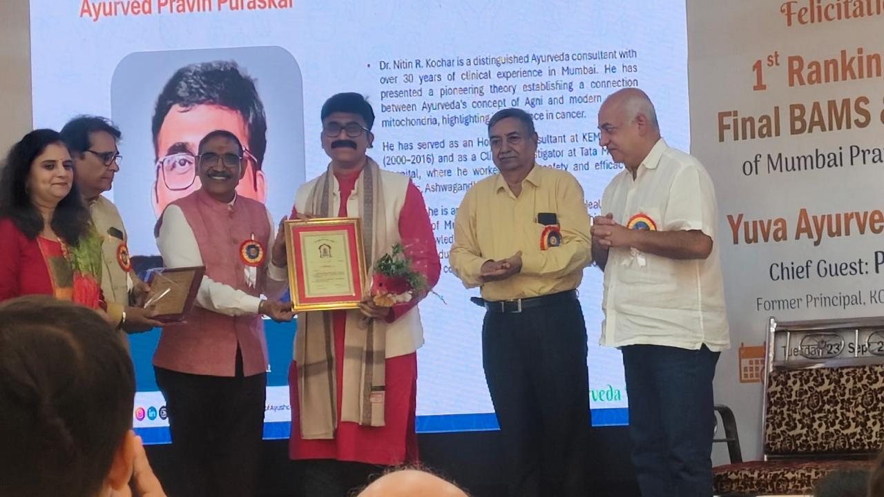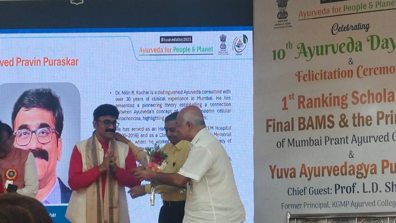 on the auspicious occasion of 10 Ayurveda Day, I was felicitated and was awarded as “Ayurveda Praveen” by Mumbai Vaidya Sabha. One of the oldest Association of Ayurveda. I submit this award to lord Dhanwantari, my parents, Teachers, Students and patients who made me capable of this.